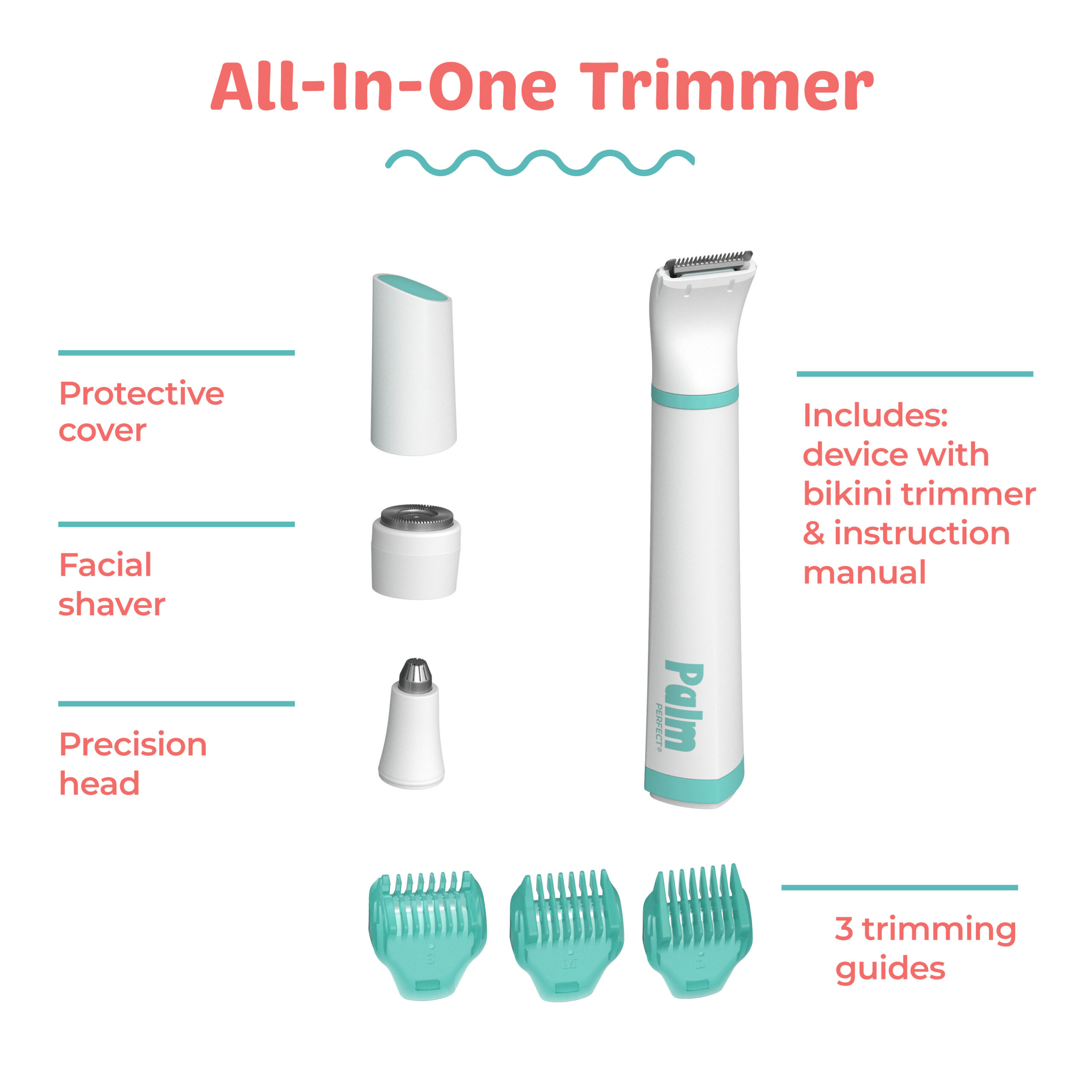 A multi-use beauty tool for multi-faceted beauties, the PalmPerfect All-In-One Personal Trimmer is the
