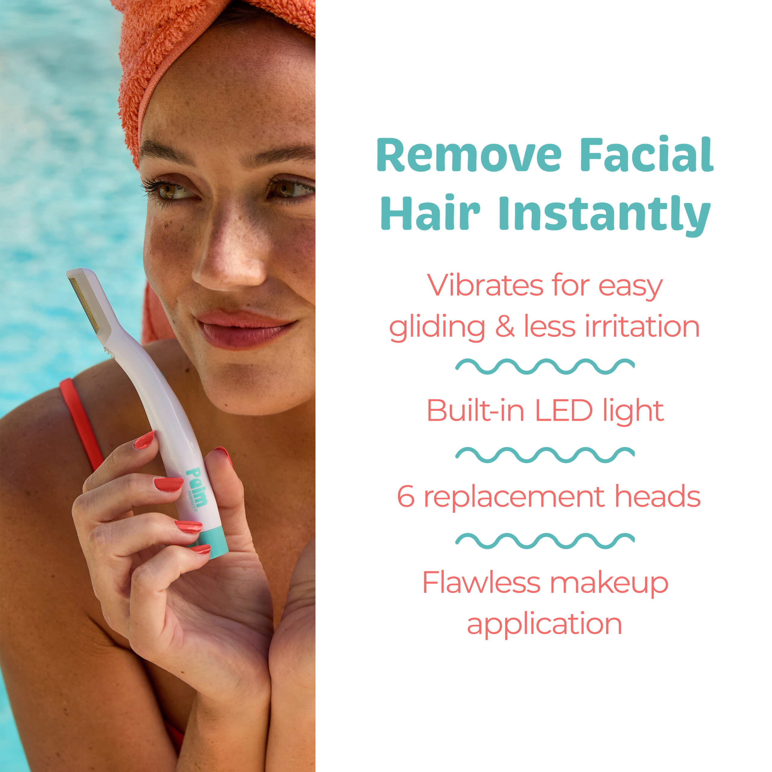 Consider the PalmPerfect Vibrating Dermaplane Razor your go-to for a fresh face that feels good and looks good, with or without makeup. Simply reload the blade (without even having to touch it!) and peace out, peach fuzz.